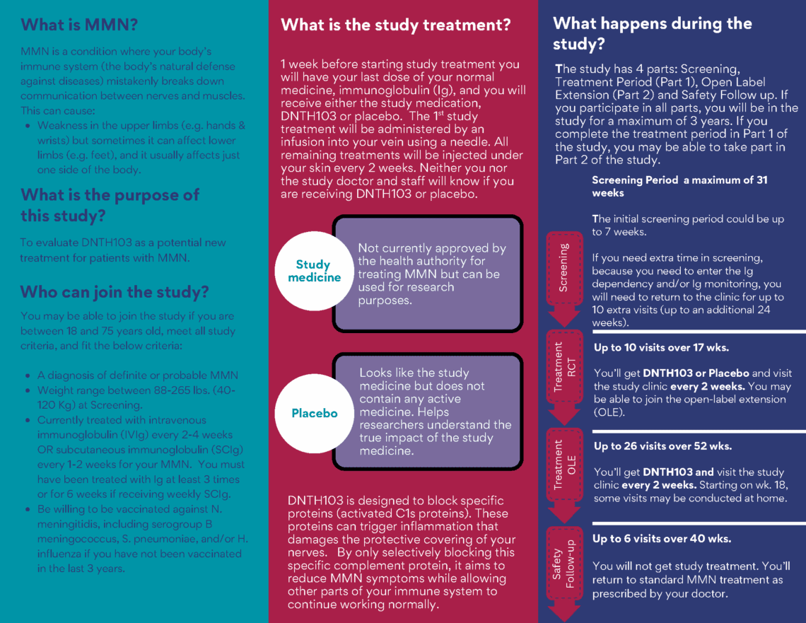 may be causing nerve damage. By only blocking activated C1s proteins, DNTH103 aims to reduce